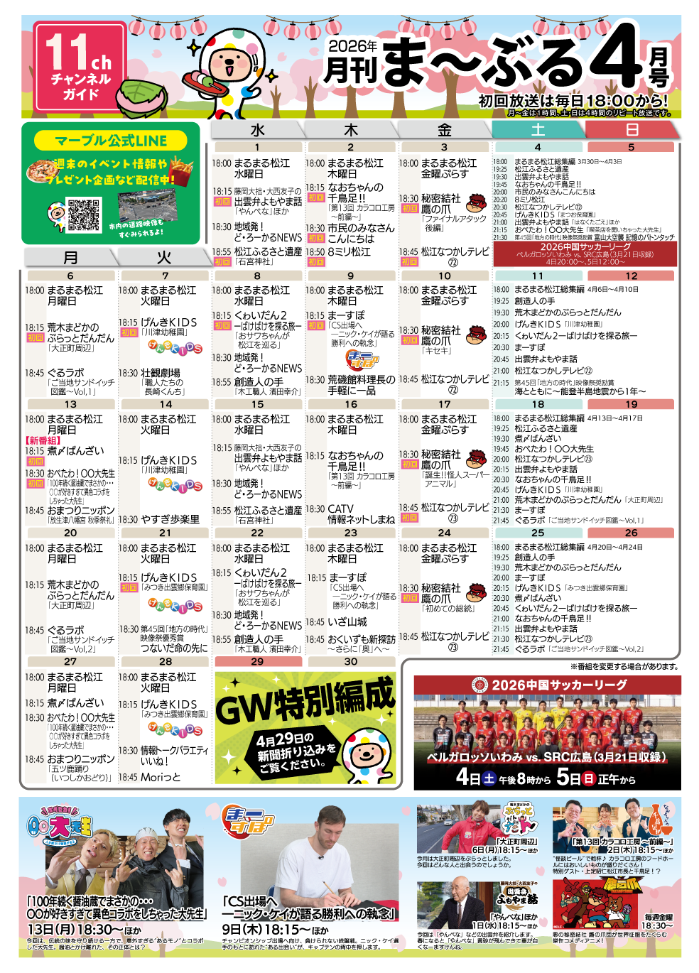 月刊ま~ぶる4月号(11チャンネル番組ガイド)♪